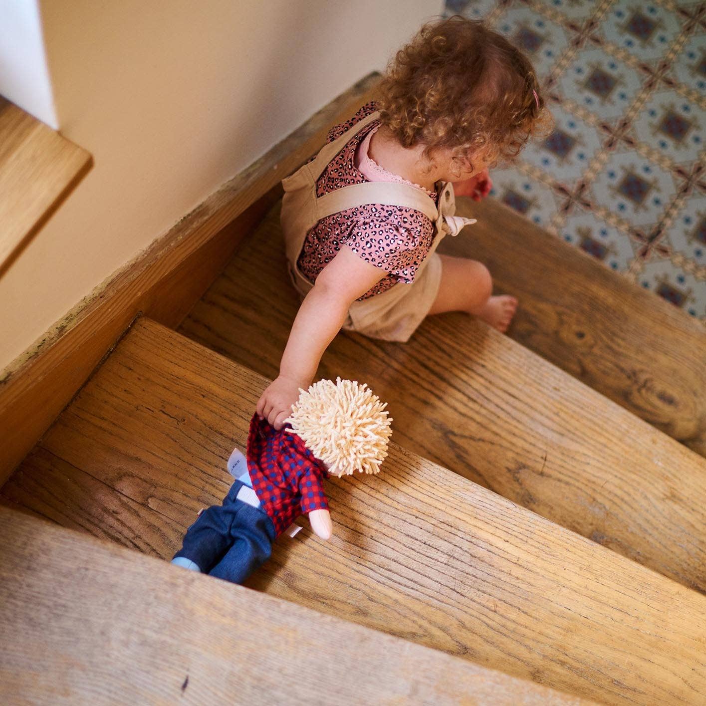 Nick is a sporty, adventurous companion ready for play, cuddles, and imaginative fun. With his vibrant blue eyes, embroidered freckles, and soft chenille hair, he’s perfect for toddlers and young children. Key Features: * Soft quilted plush body with beanbag bottom for sitting upright * Removable plaid collared shirt and blue jeans; built-in light blue undershirt * Sewn-on sneakers for convenience and safety * Embroidered facial features with freckles and vibrant blue eyes * Supports imaginative play and nurturing skills * Durable yet soft for cuddling and rough play * Compatible with HABA 12–13.75” outfits and accessories (sold separately).