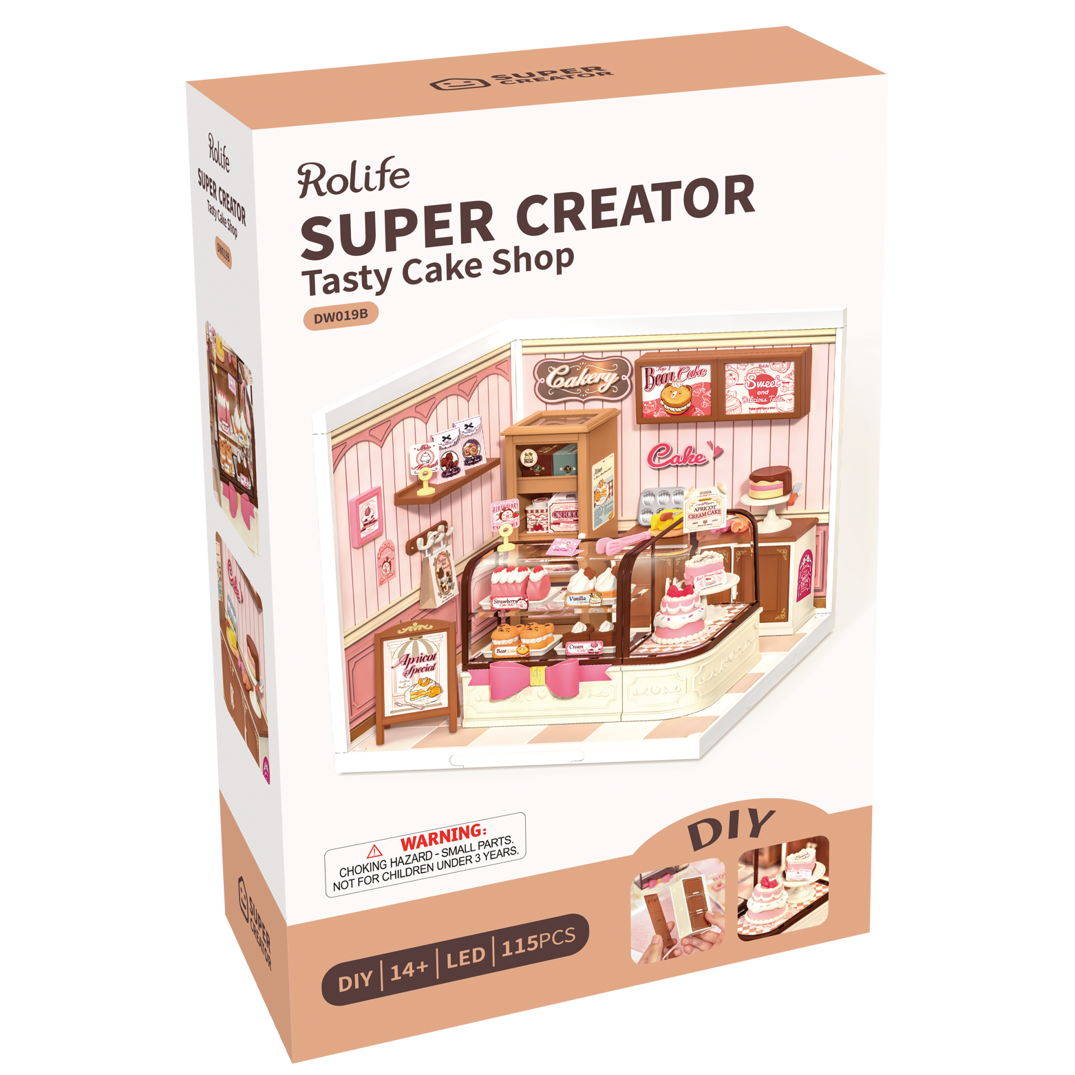 Indulge your creativity with Robotime's Tasty Cake Shop DIY Craft Kit. This kit, part of our wide range of DIY construction offerings, allows you to construct a miniature novelty cake shop, complete with pre-cut parts for ease of assembly. Most elements are pre-colored, ensuring a beautiful finished model in just a few hours. Dive into the world of crafts and hobbies with our kits, designed to provide a satisfying experience that will leave you craving more. Warning: Small parts could be a choking hazard.
