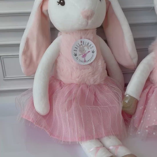 With her soft white fur, long floppy ears, and delicate light pink details, she quickly becomes a favorite among little dancers and dreamers. Her sparkling ballet skirt and golden ballet shoes make her ready for both play and dance. To complete her look, she wears a beautiful gold tiara, adding an extra touch of sparkle.